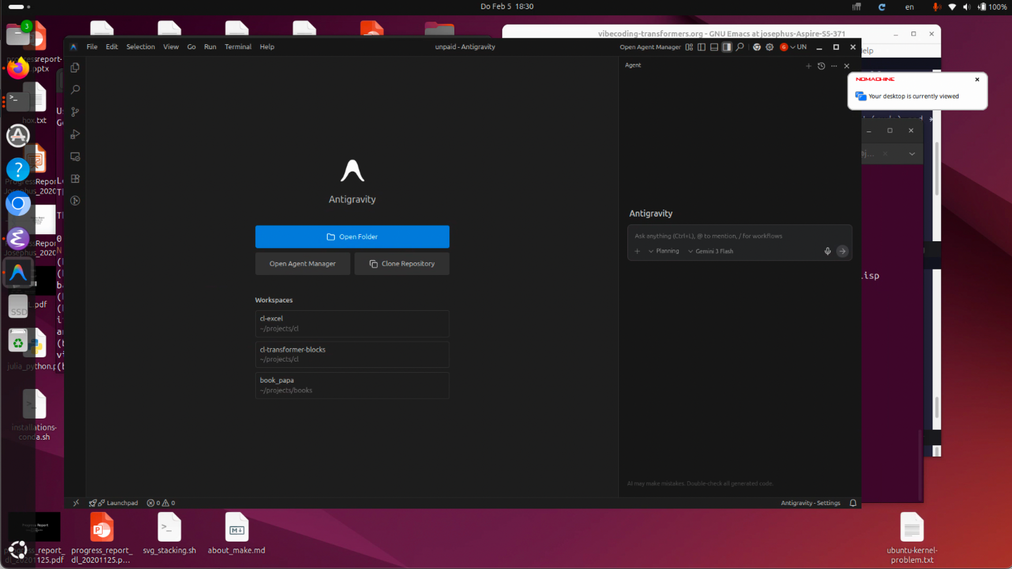 When I’m “vibecoding” — clicking buttons, letting Antigravity generate code, reviewing output, moving fast — the SSH/X11 setup is great. The window shows up on my MacBook, the Linux i7 does the heavy lifting, and my laptop stays cool.